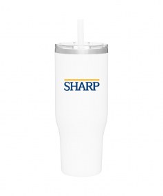 40 oz double wall 18/8 stainless steel thermal tumbler with copper vacuum insulation, stainless steel rim, dual-purpose push-on clear lid, matching sliding closure, flexible wide silicone straw, and powder coated finish