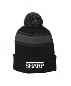 One Size Fits Most. A fan fave: a classic beanie with three stripes and a two-tone pom.