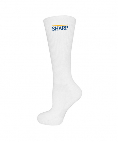 Made and decorated in the USA. Features = Over the calf length; Keeps feet cooler and drier; Rib design for work/dress/casual wear; Mild compression for swollen, achy feet and legs; Arch support to reduce fatigue; Cooling mesh for increased breathability; Cushioned heel, toe, footbed and ankle for enhanced comfort.
